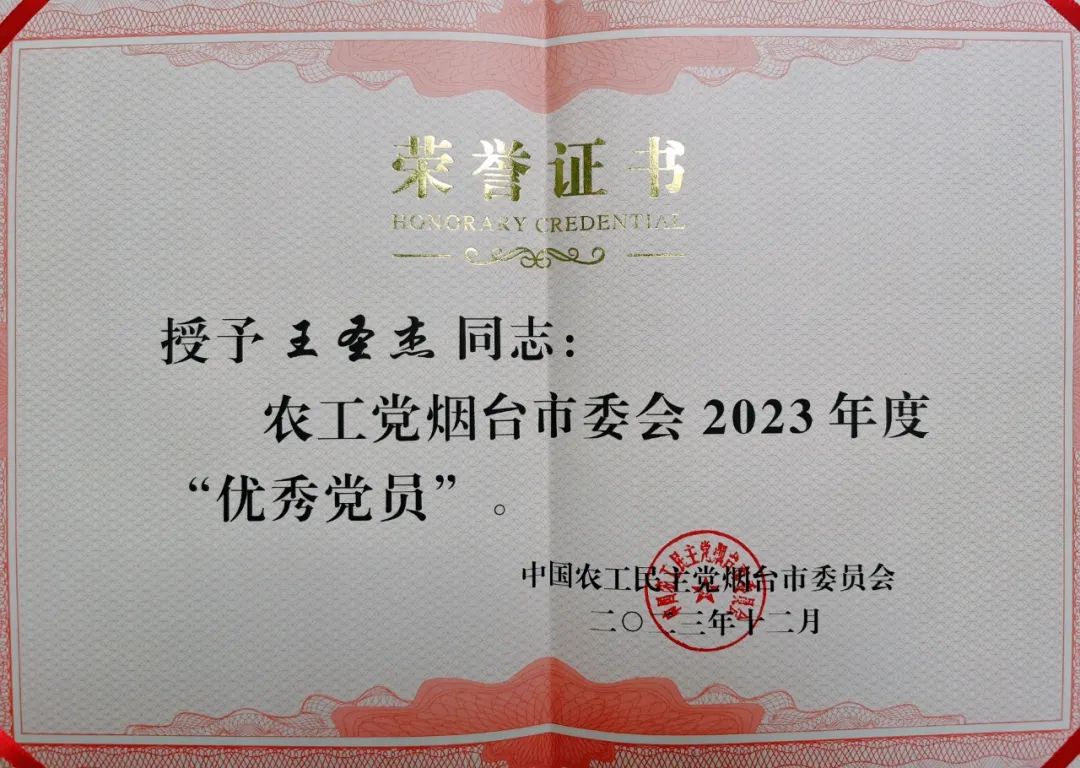 王圣杰主任被评为农工党烟台市委会2023年度优秀党员